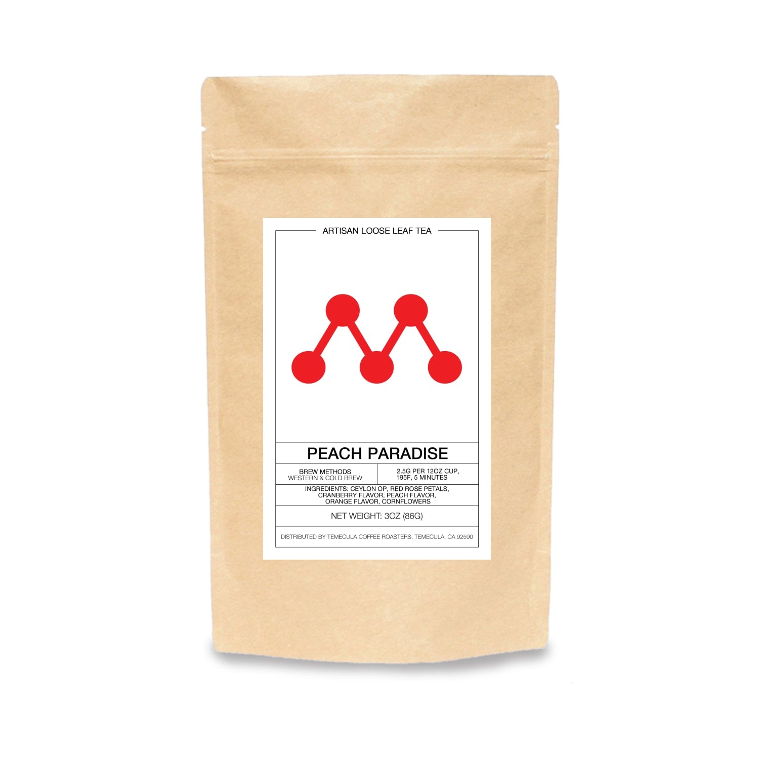 This herbal blend is fruity, smooth, aromatic, and sweet. Fruity peach, sour cranberry and smooth notes of rose, creates paradise in a cup. A fantastic and refreshing cup both hot and cold.